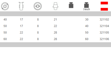 Recomendadas para usos en carros de hostelería y de colectividades con cargas ligeras Buena resistencia a los agresivos químicos, no aptas para pavimentaciones irregulares. Ejemplo de aplicaciones recomendadas: expositores para comercios, carros para hostelería, muebles con cargas ligeras.