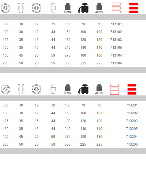 Indicadas para carros con cargas ligeras de uso principalmente en ambiente interno; el bandaje de goma gris anti-huella la convierte en apta para pavimentos frágiles y para ambientes domésticos/colectividades. El excelente deslizamiento garantiza un esfuerzo de desplazamiento manual mínimo. Ejemplos de aplicaciones recomendadas: carros portaequipajes, carros porta herramientas, carros para colectividades y hostelería, carros para uso interno industrial, carros tubulares.