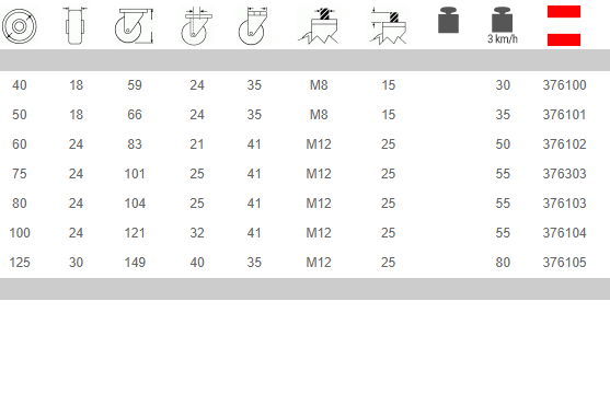 Aptas para uso en carros de diferente tipo en el ámbito del mobiliario y de las colectividades. Pueden usarse incluso sobre pavimentos frágiles y cuando existan obstáculos de pequeñas dimensiones durante el recorrido. Ejemplo de aplicaciones recomendadas: escaparates y expositores para tiendas, carros porta-utensilios de baja capacidad, carros para supermercados.