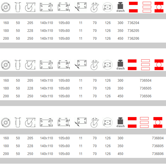 Ruedas con excelentes características de elasticidad, indicadas sobretodo para uso con pavimentaciones irregulares, con obstáculos o para usos mixtos externos/internos con cargas media. La excelente elasticidad y el buen deslizamiento garantizan el mínimo esfuerzo sobretodo sobre pavimentos en mal estado. OBSTÁCULOS Ejemplos de aplicaciones recomendadas: carros para desplazamiento industrial interno y externo, transpaletas manuales, cajas para transporte de instrumentos musicales.