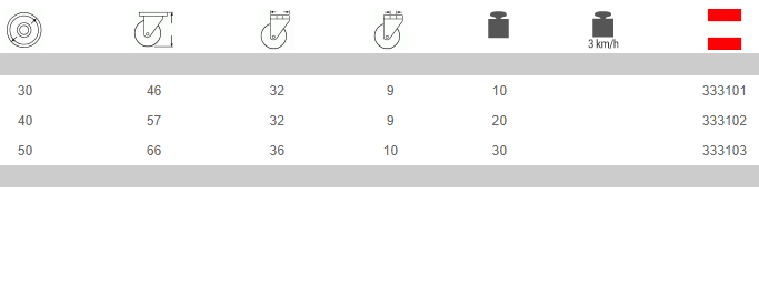 Recomendadas para uso en ambientes internos, sin agentes químicos agresivos. Pueden usarse sobre pavimentaciones frágiles, incluso sobre moquetas. Ejemplo de aplicaciones recomendadas: muebles de casa y de oficina con baja capacidad de carga.